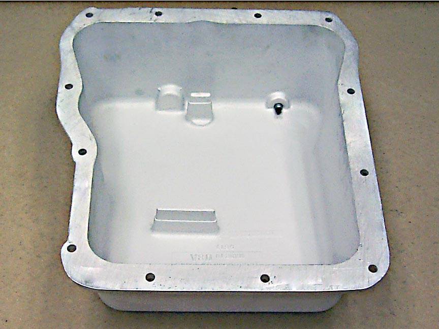 The transmission pan features filter supports that are an integral part of the floor.