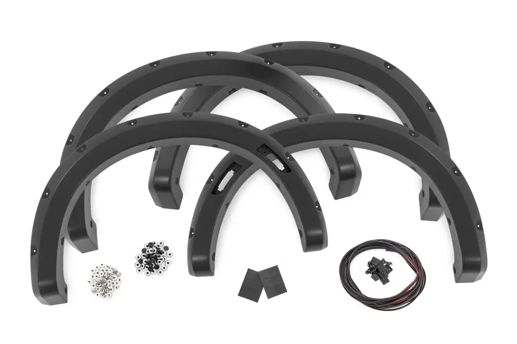 Add aggressive good looks quickly and easily with Rough Country's Fender Flares. Nothing compliments a new lift, wheels, and tires like a set of stylish, mean-looking fender flares. Rough Country's Fender Flares are designed with a simulated riveted look.