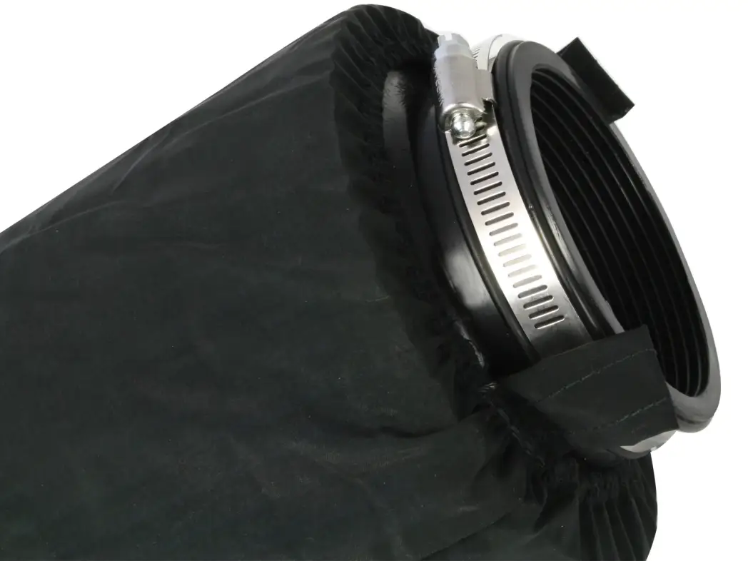 aFe Magnum Shield Pre-Filters protect your performance air filter and extends your filter cleaning intervals by removing large particles from the air stream prior to the air filter. This pre-filter does not restrict air flow and is made of a dry weave fabric that does not attract dirt and cleans with soap and water.