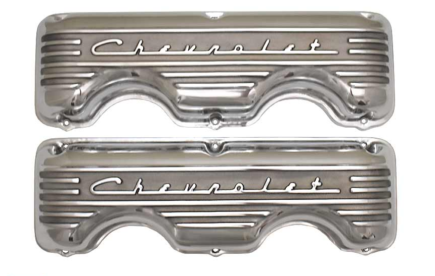 PML designed these valve covers for the classic hot rods of the 1950s and 1960s with the 348 or 409 Chevy™ W block engine. The CHEVROLET script and fins are cast into the cover and raised for a classic look.