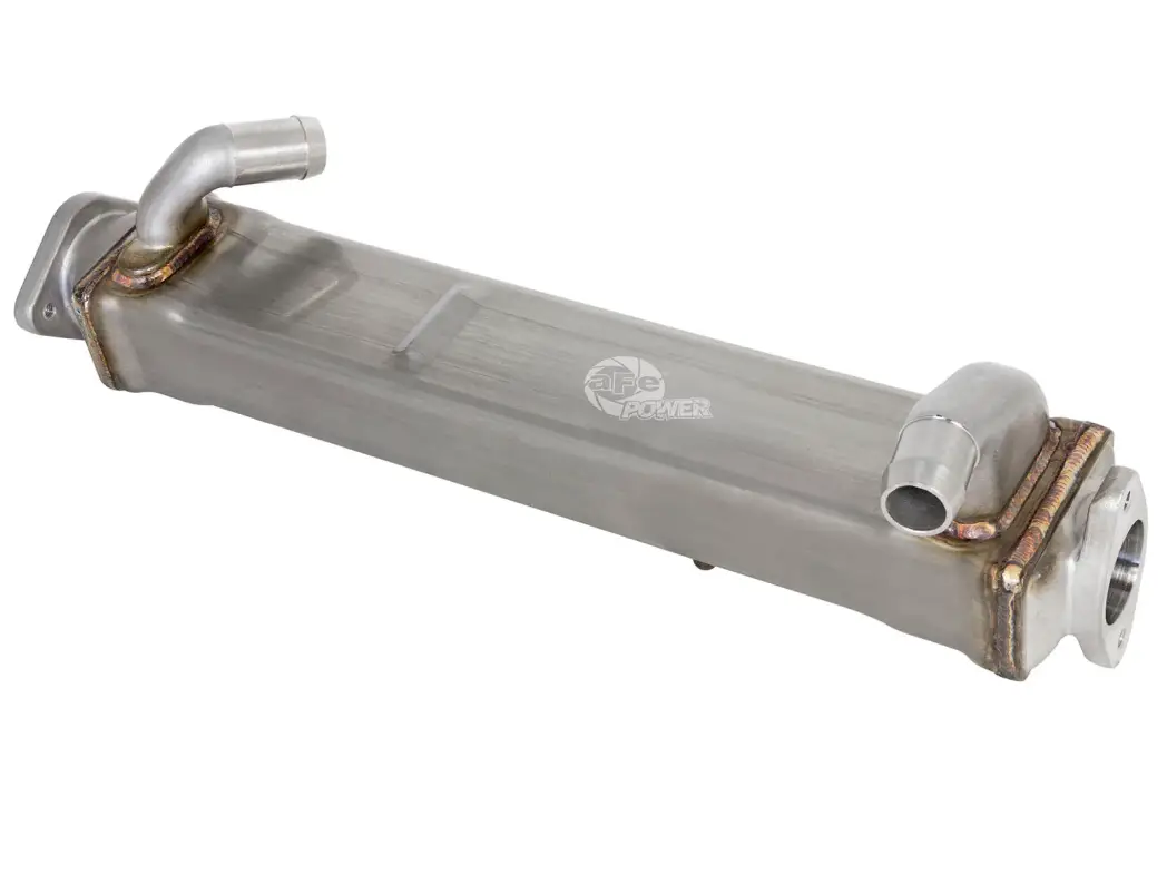 aFe Power is proud to introduce the horizontal direct replacement EGR Cooler for 2008-2010 V8-6.4L turbo diesel Ford Power Stroke trucks. This EGR Cooler is a 100% new unit, not remanufactured. The cooler utilizes a thicker wall to extend life and resist failure. The unit is TIG welded and pressure tested at the factory. This kit includes all hardware needed for the removal and replacement of the EGR cooler for a hassle free installation. aFe simplifies the buying experience by not requiring a core charge nor a core exchange fee.