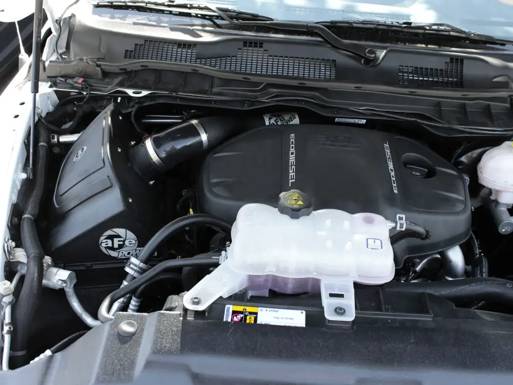 For those of you who have an aFe Power Stage-2 intake system for the RAM 1500 EcoDiesel V6-3.0L, aFe Power now offers an intake cover to help reduce air intake noise. This cover is constructed of vacuum formed ABS plastic material that bolts right up to the intake housing. The aFe logo is front and center letting everyone know what brand of intake you have. This cover provides a stealthy yet aggressive style without hurting the performance of the intake.