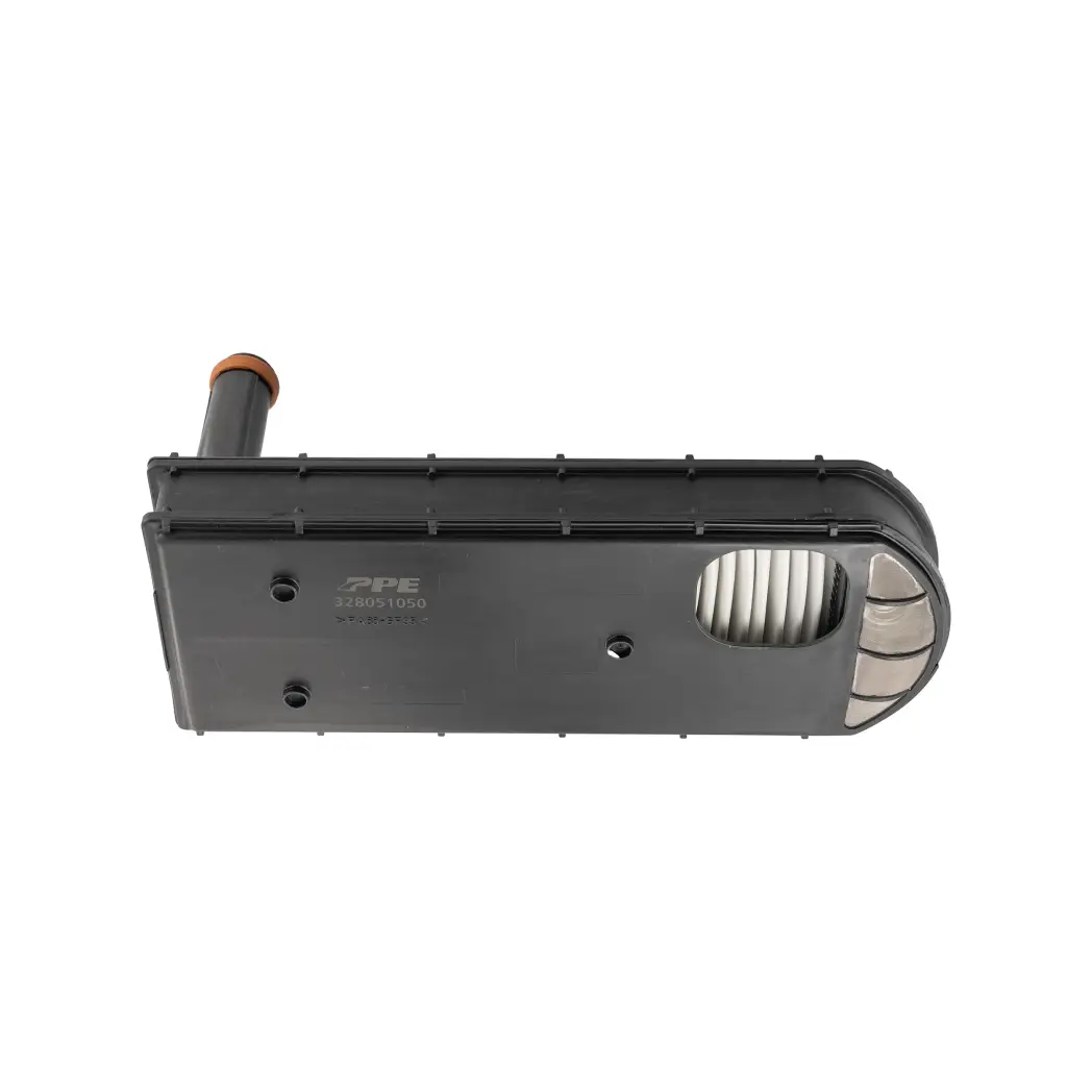 328051020 | PPE Performance Heavy-Duty Cast Aluminum Transmission Pan Black Finish (2003-2010 Ford F250, F350 Super Duty 6.L, 6.4L Power Stroke 5R110)