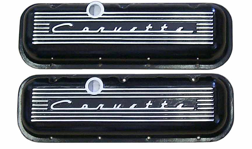 These tall, heavy duty valve covers from PML for big block Chevy engines feature raised CORVETTE script and fins and top quality construction. The classic CORVETTE script is licensed from General Motors.