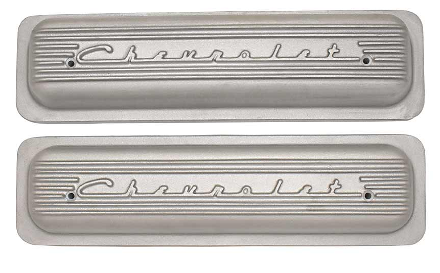The valve covers feature vintage CHEVROLET lettering and fins for a classic appearance. PML made these for GM Generation II LT1 and LT4 small block engines, center bolt mounting.