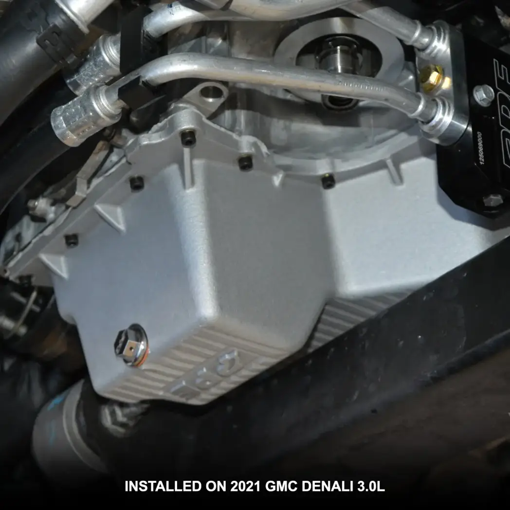114054000 | PPE Performance Heavy-Duty Cast Aluminum Engine Oil Pan Raw Finish (2020-2025 Silverado, Sierra 1500 3.0L td)