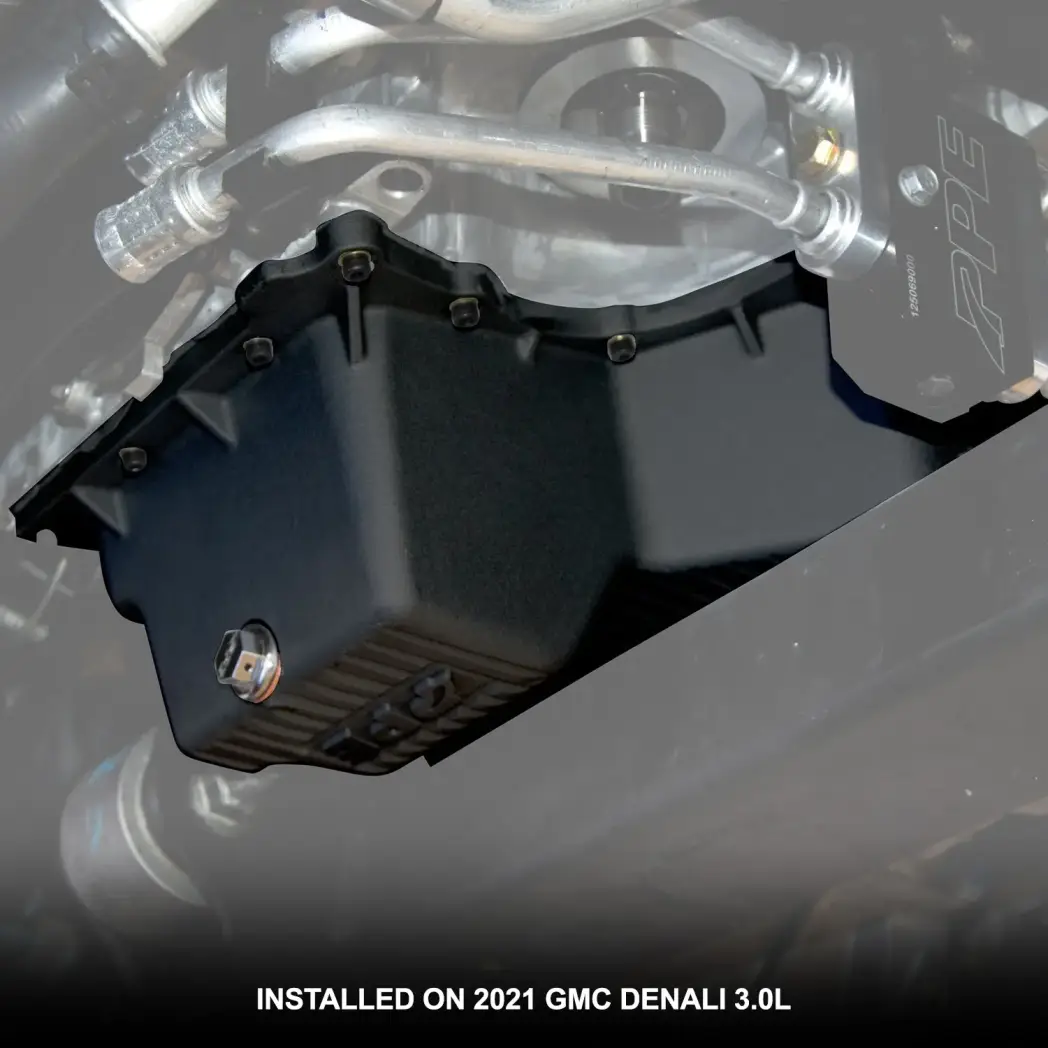 114054020 | PPE Performance Heavy-Duty Cast Aluminum Engine Oil Pan Black Finish (2020-2025 Silverado, Sierra 1500 3.0L td)