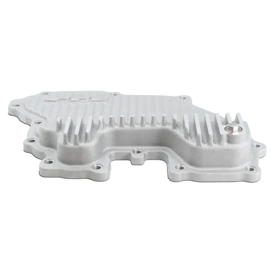 This new engine oil pan is engineered as a performance replacement for the thin, stamped steel factory pan. Cast in high-strength A356-T6 aluminum alloy, this thick pan dissipates heat more efficiently to reduce engine oil temperatures.