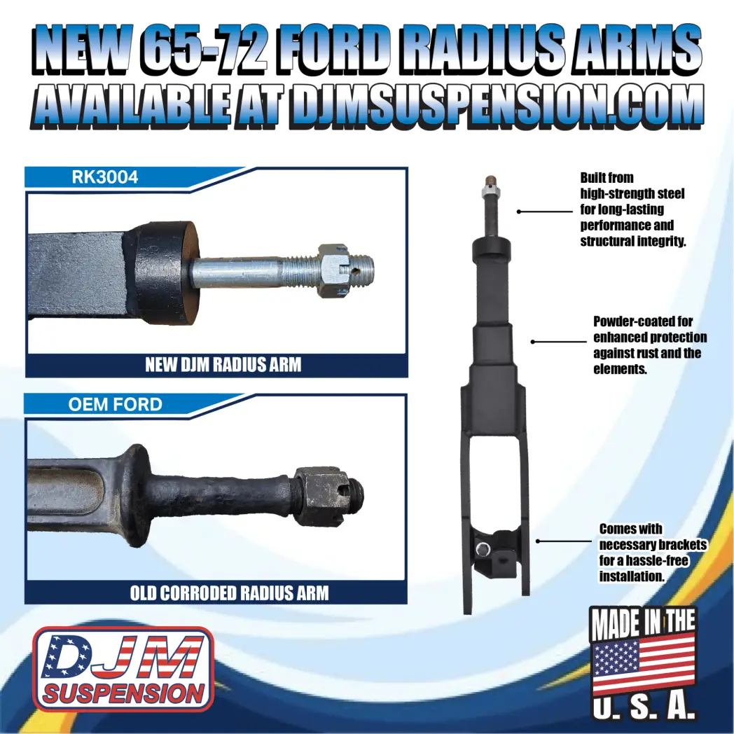 Upgrade your classic Ford F100’s suspension performance and handling with DJM’s precision-engineered Replacement Radius Arms. Designed specifically for 1965–1979 F100 models, these heavy-duty radius arms correct alignment issues commonly caused by lowering kits, while enhancing stability and control on the road.