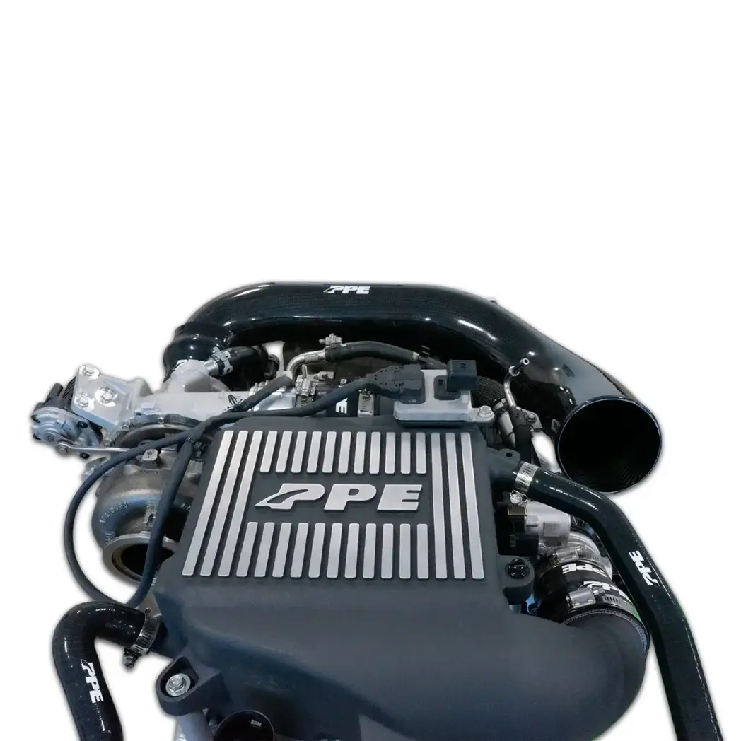 Through extensive testing and calibration, PPE has achieved a design that reduces pressure drop by 73% and optimizes airflow, resulting in improved engine performance and turbo efficiency. The kit Includes all the necessary hardware and easily mounts to the factory locations. The turbo side connection is secure with the provided silicone coupler and constant-tension clamps.