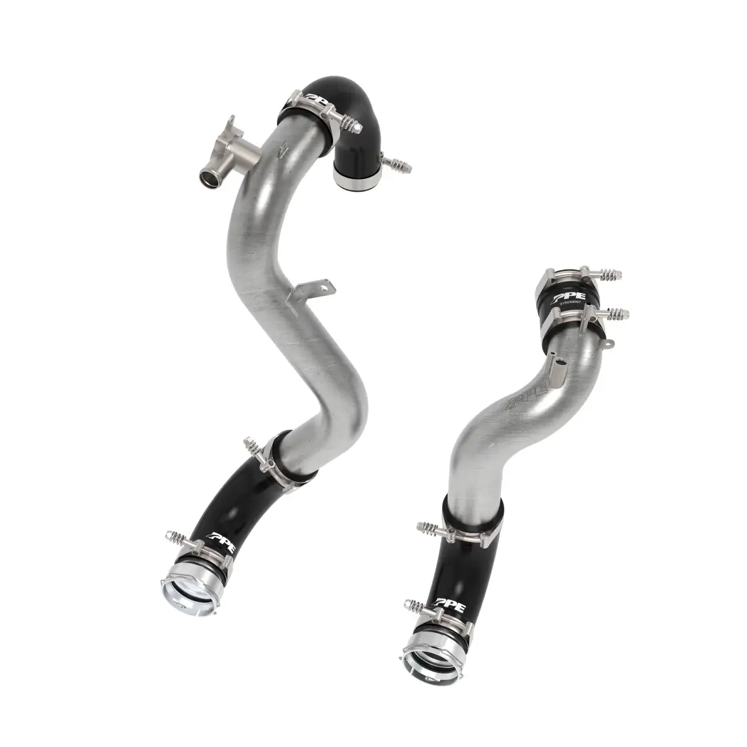 The 2-inch hot side/2.2-inch cold side factory intercooler piping adds restriction to the intake system due to insufficient sizing and tight bends. The PPE charge pipe kit features 2.5-inch hot side pipe and 2.75-inch cold side pipe, increasing the cross-sectional flow area by 50% on both sides, eliminating factory restrictions and optimizing flow characteristics. The 304 stainless steel construction ensures these pipes deliver the performance you need even in the harshest environment.