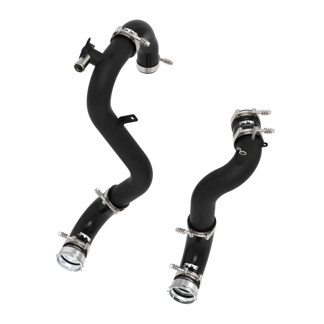The 2-inch hot side/2.2-inch cold side factory intercooler piping adds restriction to the intake system due to insufficient sizing and tight bends. The PPE charge pipe kit features 2.5-inch hot side pipe and 2.75-inch cold side pipe, increasing the cross-sectional flow area by 50% on both sides, eliminating factory restrictions and optimizing flow characteristics. The 304 stainless steel construction ensures these pipes deliver the performance you need even in the harshest environment.
