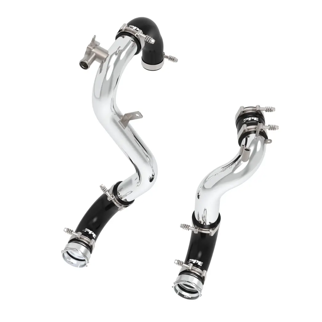 The 2-inch hot side/2.2-inch cold side factory intercooler piping adds restriction to the intake system due to insufficient sizing and tight bends. The PPE charge pipe kit features 2.5-inch hot side pipe and 2.75-inch cold side pipe, increasing the cross-sectional flow area by 50% on both sides, eliminating factory restrictions and optimizing flow characteristics. The 304 stainless steel construction ensures these pipes deliver the performance you need even in the harshest environment.