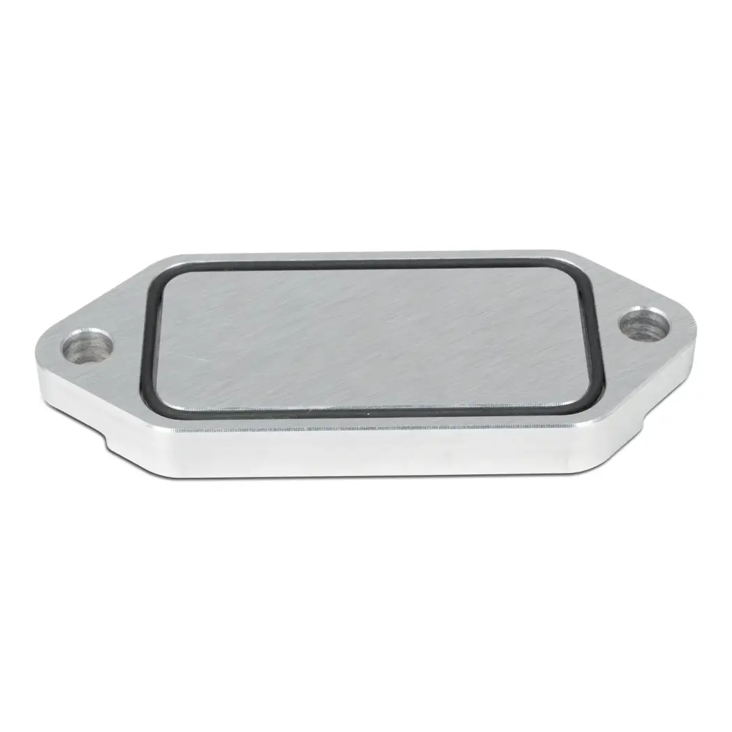 The OEM block off plate uses a gasket and can leak over time. The PPE Billet Block-Off Plate is thicker and uses an O-ring seal made from Viton for maximum longevity. The PPE Billet Block-Off Plate installs using the OEM fasteners.