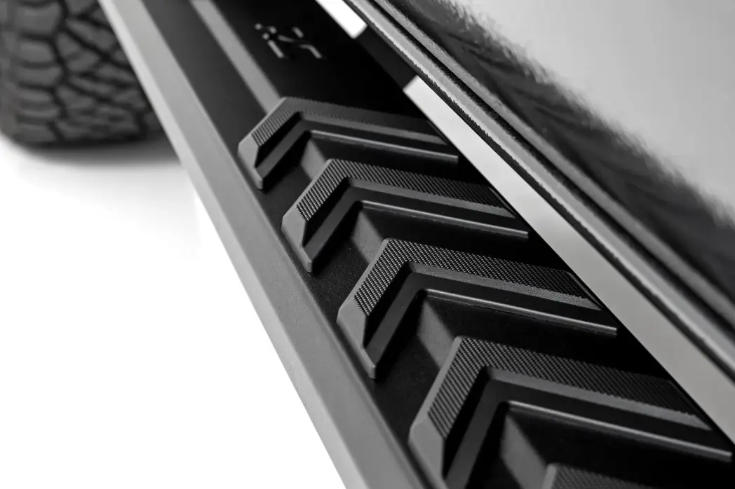 Heavy-Duty Construction: Built to last, Rough Country's BA2 Running Board Side Steps feature a durable steel construction with a textured powder-coated finish for superior corrosion resistance. The integrated nonslip stepping surface ensures maximum traction, even in wet or muddy conditions. Engineered to support up to 500 lbs., these steps are as strong as they are stylish.