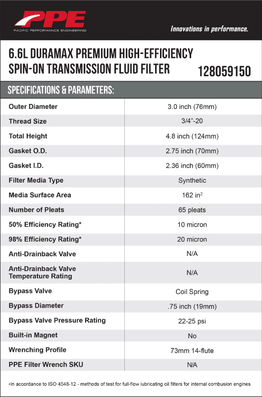 128059150 | PPE Performance High-Efficiency Spin-On Transmission Fluid Filter, GM Allison 1000 & 2000 For GM 6.6L Duramax