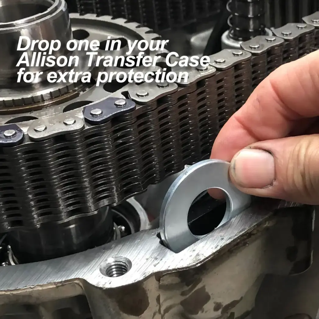 Pump rub occurs when the four positioning tabs holding the pump in place wear over time. This causes the oil pump to come into contact with the housing itself. The result is a hole worn in the cover, causing fluid to leak and the probability of damaging the transfer case. This simple kit eliminates this problem.