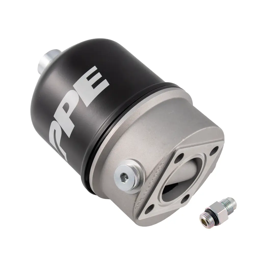 The PPE Universal Oil Centrifuge uses engine oil pressure to spin its internal rotor at over 6,000 RPM, separating solid contaminants and heavy metals from the oil supply. As oil enters the centrifuge, impurities are forced outward into a removable outer housing that can be easily cleaned during routine maintenance. This advanced system captures particles as small as 1/10th of a micron.
