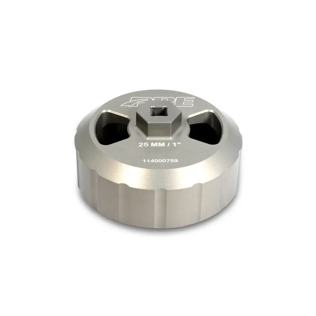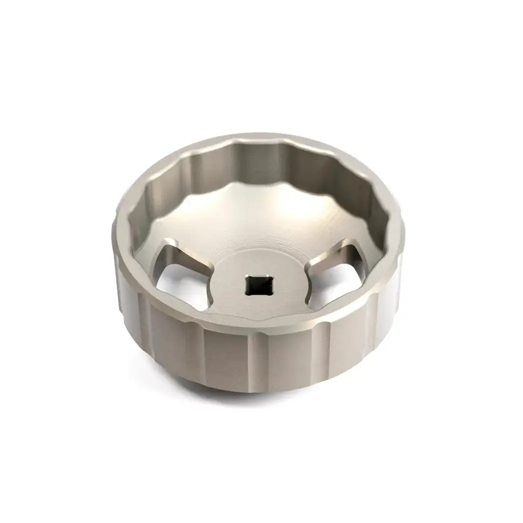 CNC machined from premium 6061 billet aluminum block and finished with hard anodizing, this versatile filter socket is compatible with a 3/8-inch square drive or a 1-inch (25mm) socket.
