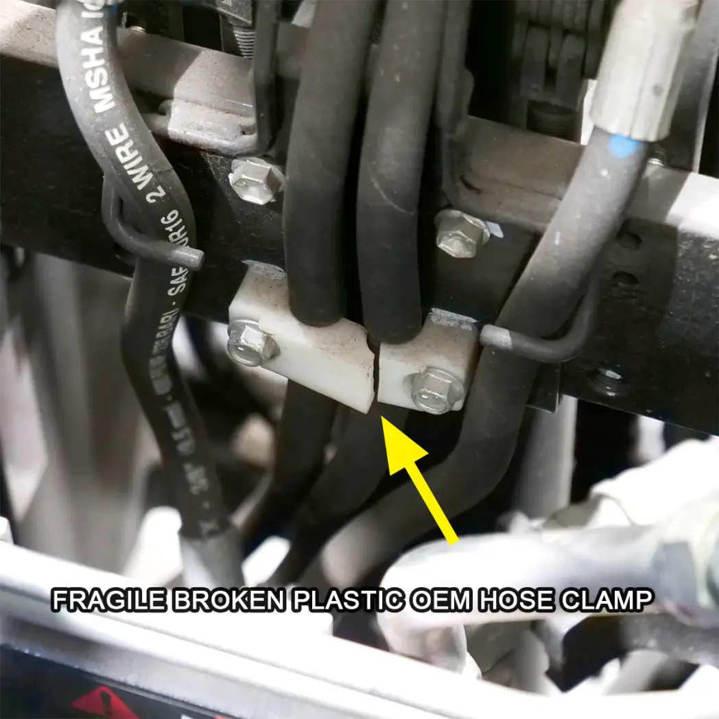 After having several of these hydraulic line clamps break on our warehouse forklifts we decided to make a reliable replacement. There are a total of four hydraulic line hose clamps being used on the PPE Toyota Forklift.