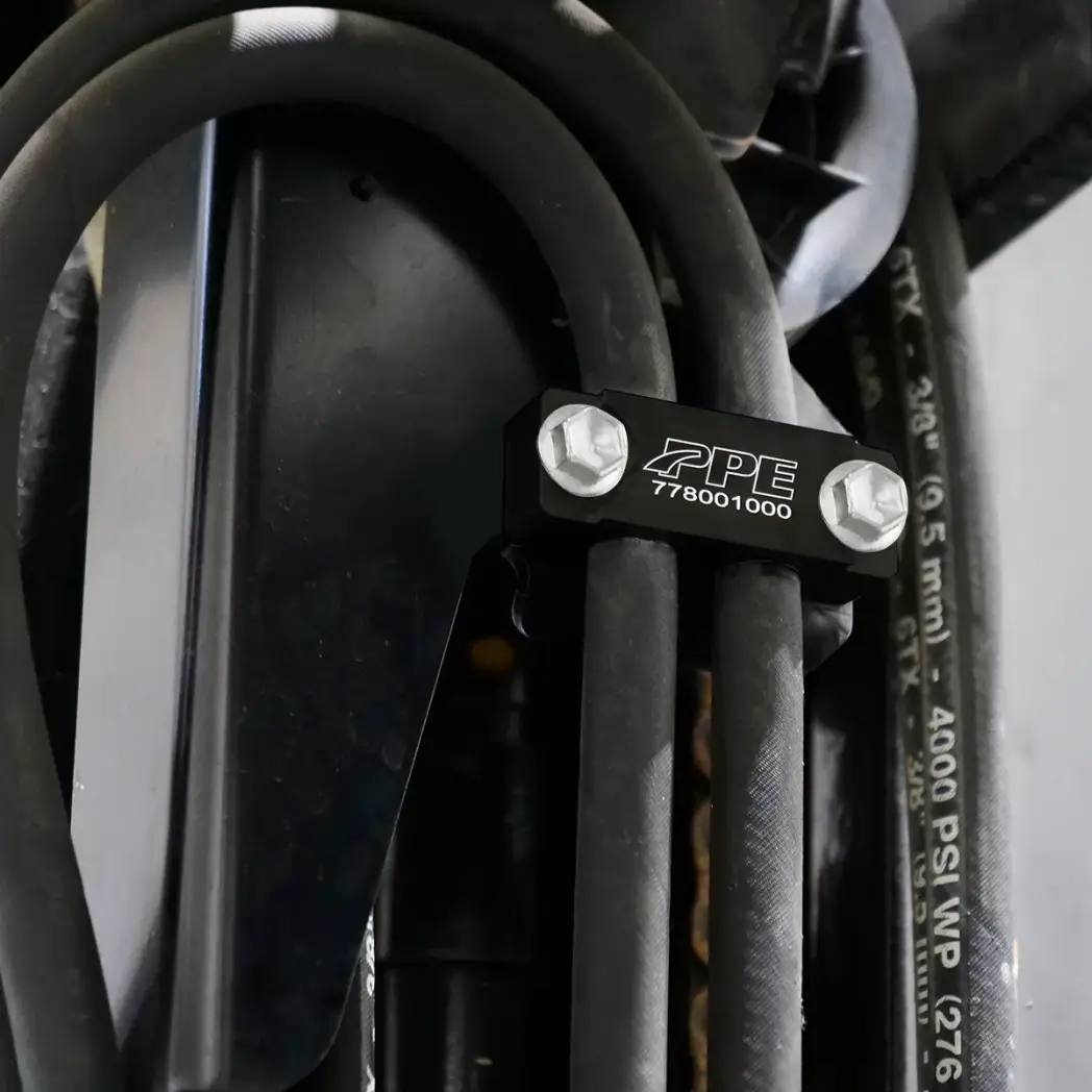 PPE's hydraulic clamp is made of high-quality, CNC-machined Billet aluminum with an anodized black finish.