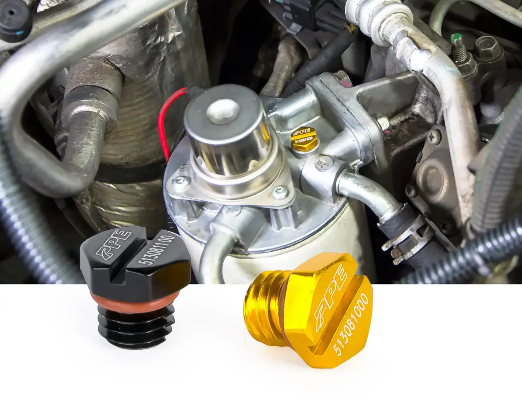 People know that billet aluminum is a lot tougher than plastic. That toughness means fewer problems over time. So replace your fragile plastic, factory air bleeder screw with the longer-lasting billet aluminum PPE Air Bleeder Screw.