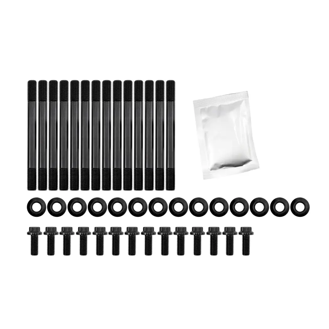 This Main Stud Kit is compatible with the stock main cap girdle. M10 girdle bolts with 12-pt head are included. Kit also comes with assembly lubricant packet for uniform load distribution and accurate torque readings.