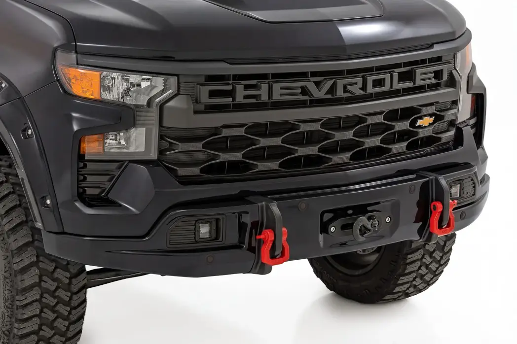 13006-GBA | Rough Country FXS Front Bumper For Chevrolet Silverado 1500 2WD/4WD | GBA, Black Paint Code, Winch Mount Only