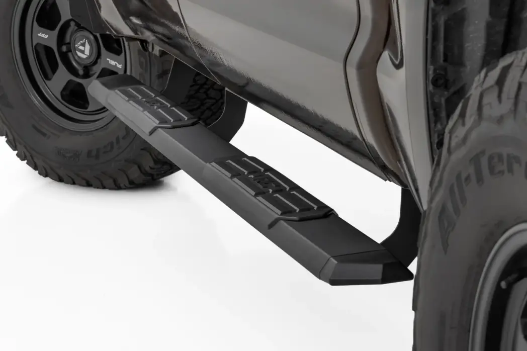 Rugged Style Meets Unmatched Functionality: Upgrade your Toyota Tundra with Rough Country's TR2 Aluminum Running Boards. Engineered for durability and style, the TR2 provides a stable, full-length 5" stepping platform for every adventure, on or off the road.