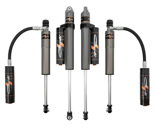 - 2.5" Aluminum Body Reservoir shocks finished in a gray hard coat