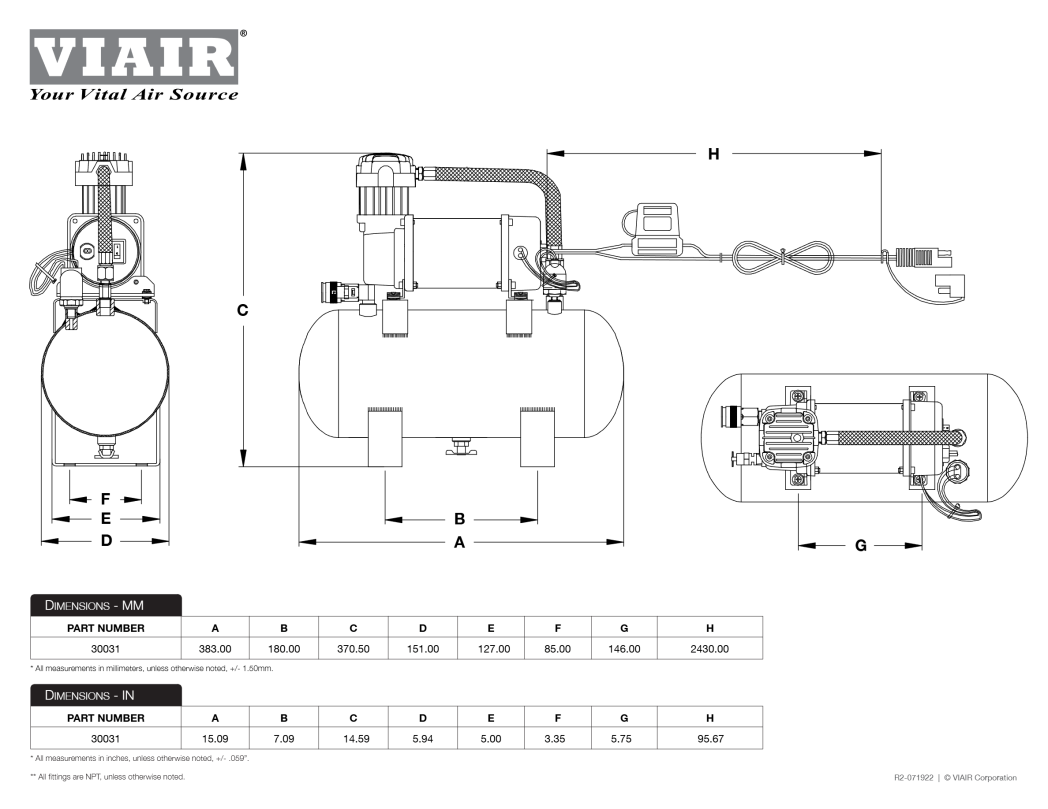 30031 | VIAIR TLC BOOST 120 PSI Air Source Kit With 1.5 Gallon Tank