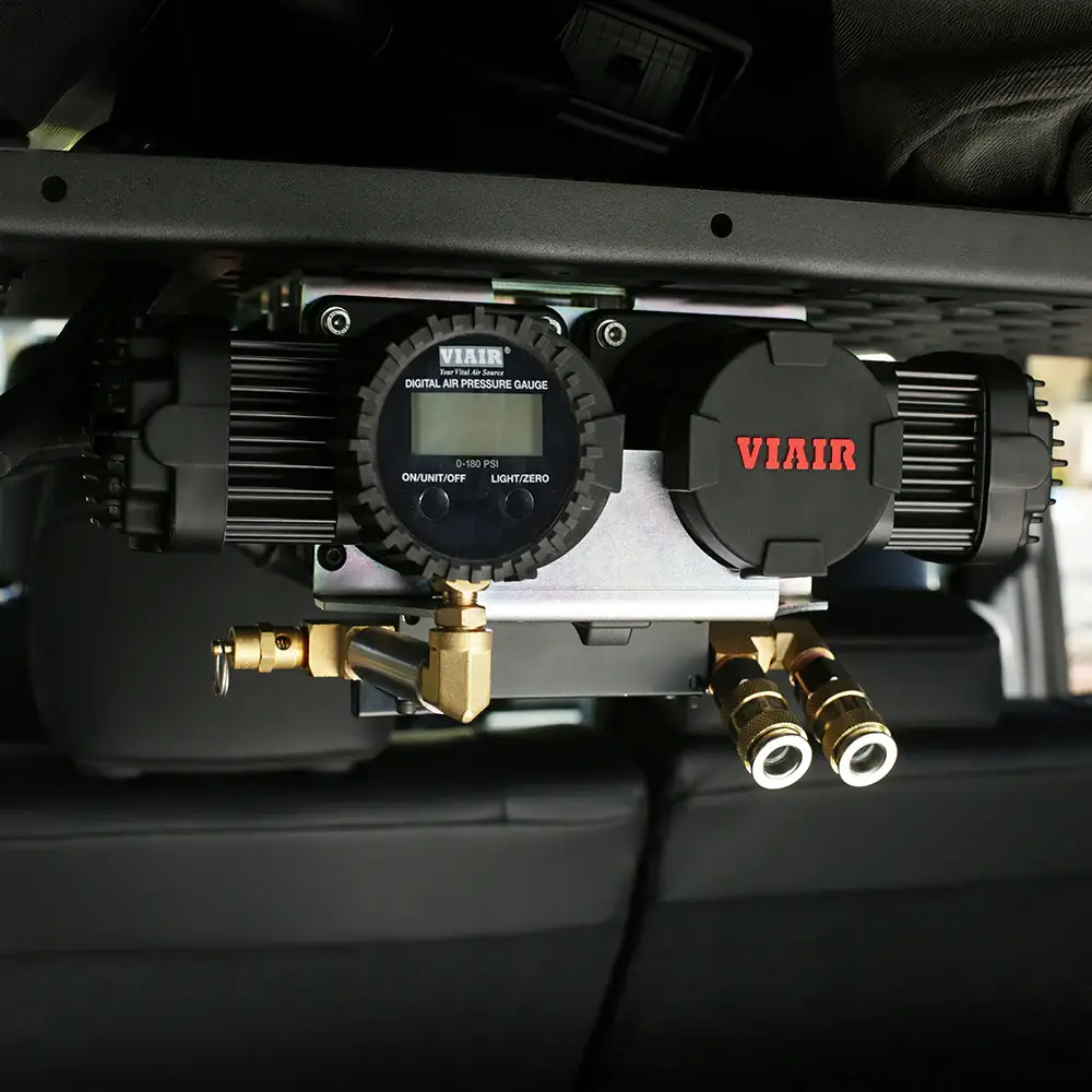 The DUAL VMS PRO System is our top-tier air management solution. We've taken our Dual VMS PLUS system and enhanced it. With a custom engineered 4-Way hose system, dual high-flow couplers, a digital gauge and a dump valve, it transforms your onboard air into a fully integrated station for precise inflation and deflation. Allows for fast deflation and inflation for up to 4 tires. The DUAL VMS PRO system is the perfect solution for the novice and or for hard core off-roader.