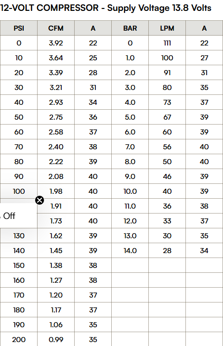 - CFM: 3.92 @ 0 PSI