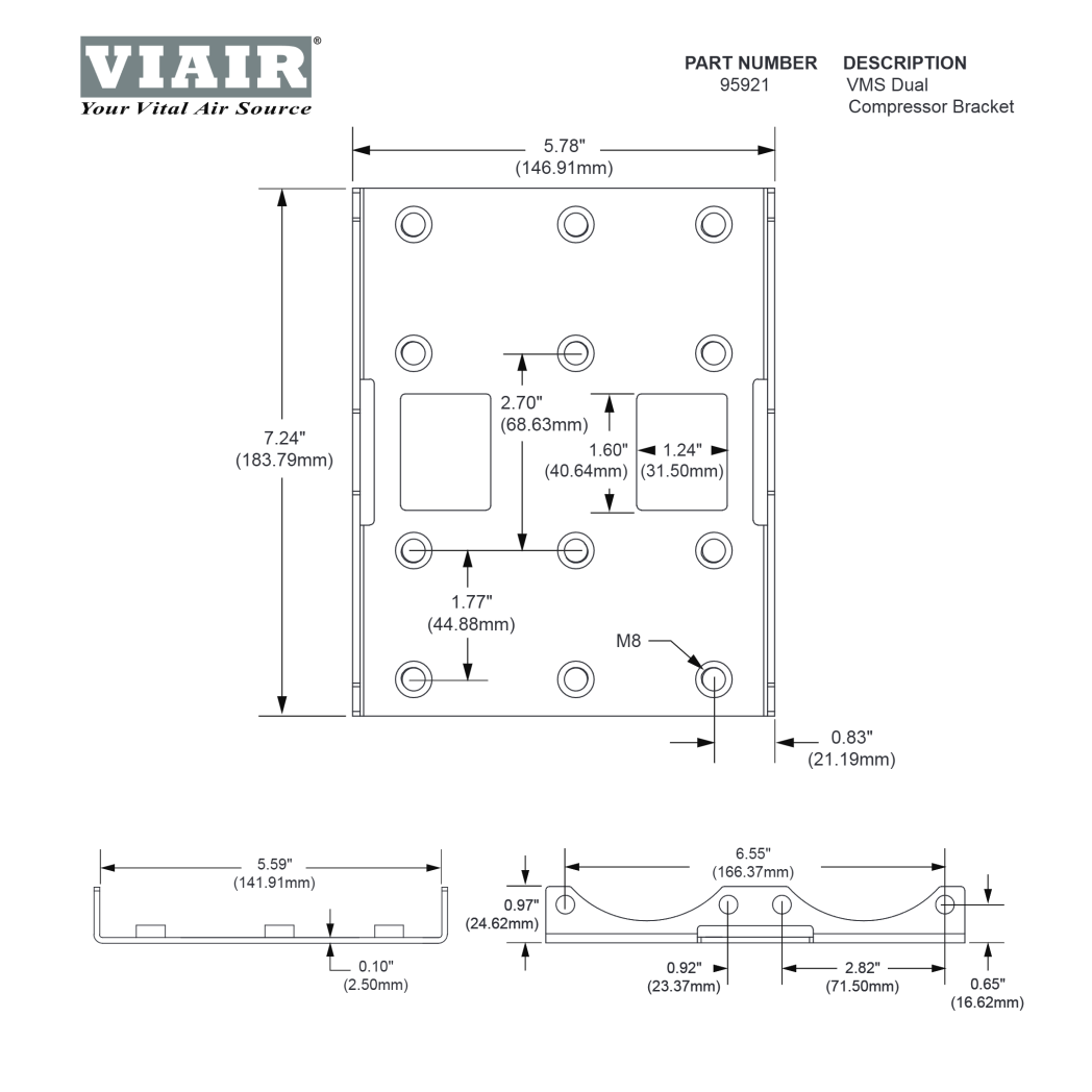 95921 | VIAIR VMS Dual Compressor Custom Lock Mount Bracket | 380/425/400 & 440 C-Models, Stainless Steel