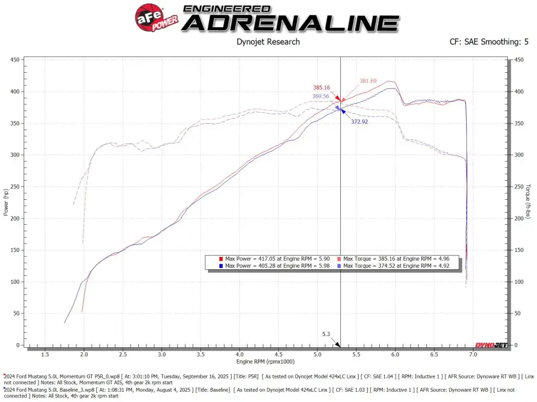 50-70117R | aFe Power Momentum GT Cold Air Intake System With Pro 5R Filter For Ford Mustang GT/Dark Horse V8-5.0L