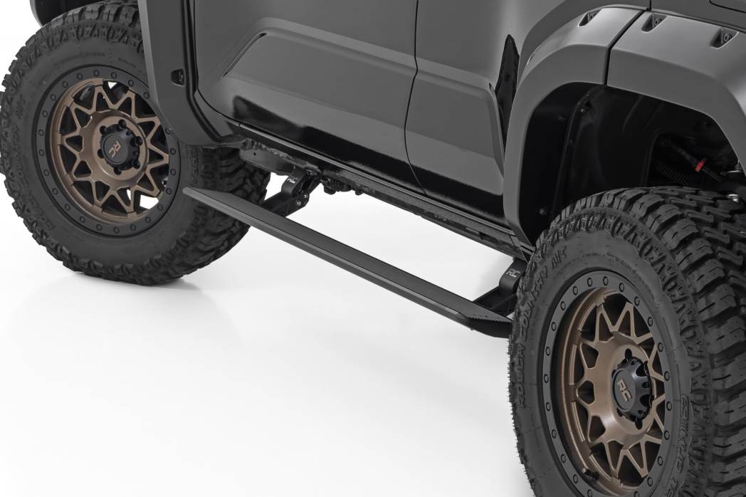 - Low-Profile Tucked Design: Boards tuck tight under the rocker panel for a clean, in-line appearance when retracted.