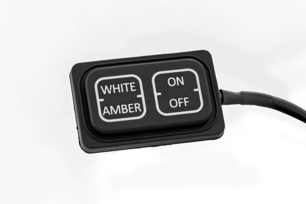 - Customizable LED Output: Selectable amber or white illumination controlled by a discreet internal switch.