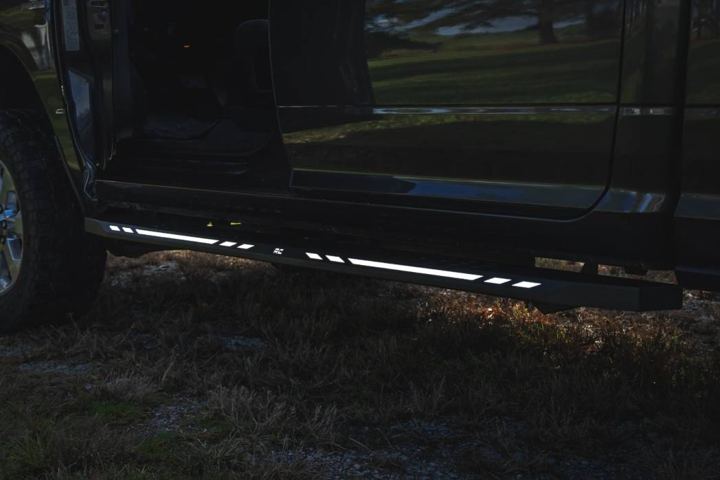 Aggressive Style Meets Everyday Functionality: Upgrade your truck's look and performance with Rough Country's AC2 Running Boards. These premium cab-length steps combine rugged durability, modern styling, and practical convenience in one sleek package.