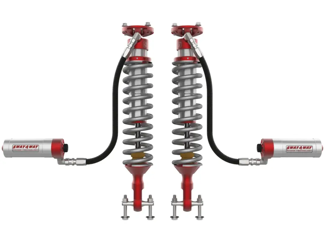 These Sway-A-Way coilovers are designed to work with the factory upper control arm and allow for 10.5” of wheel travel, without binding CV or ball joints. (A set of aFe Control upper control arms are recommend if adjusting lift over 3.0”).