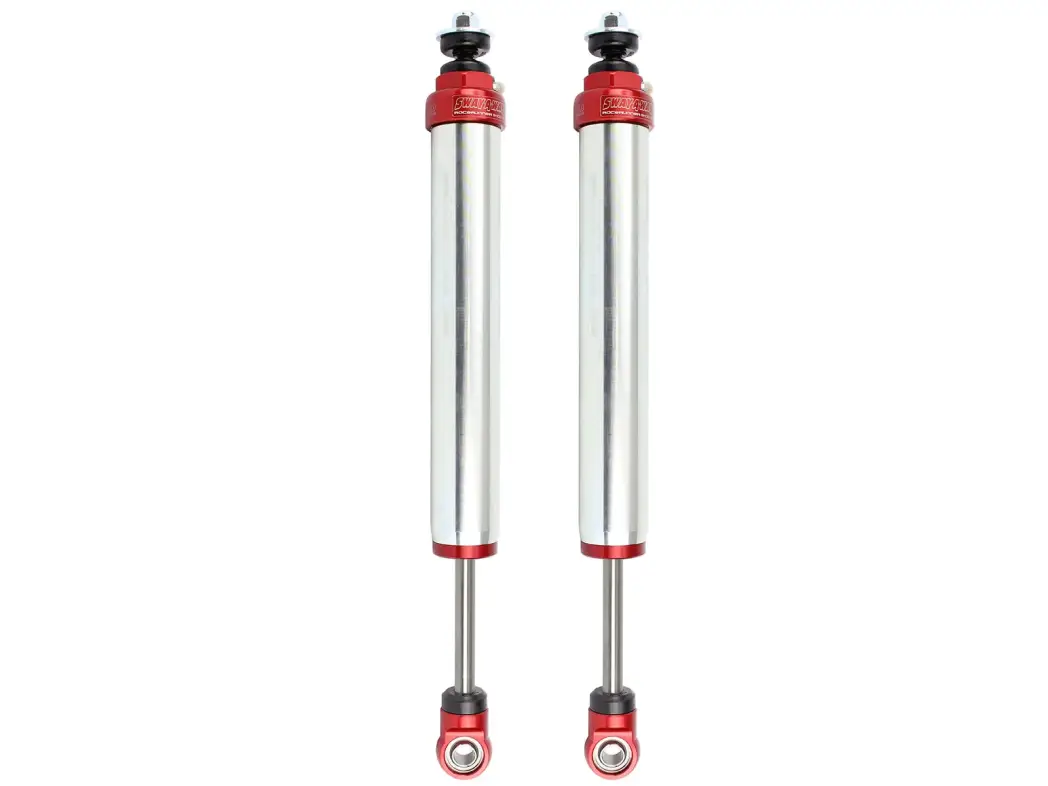 Sway-A-Way line of High Performance OE replacement shock absorbers for your Jeep Wrangler (JK) feature all the same race winning engineering as they have for the past 20+ years. Designed and tested to meet the toughest off-road conditions without sacrificing the comfort or handling needs in every driving. These front shocks are 100% designed and built in the USA that feature bright zinc plated steel cylinder bodies and CNC machined aluminum components. This package is designed as a direct fit application and works with most 3-5" lift kits.