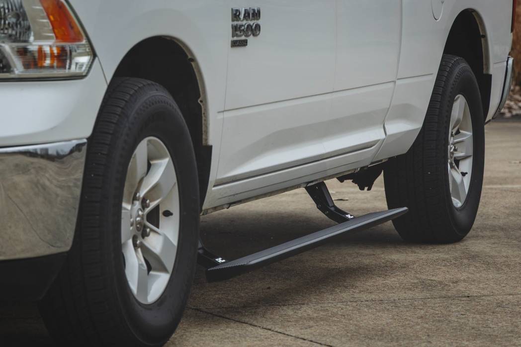 - Low-Profile Tucked Design: Boards tuck tight under the rocker panel for a clean, in-line appearance when retracted.