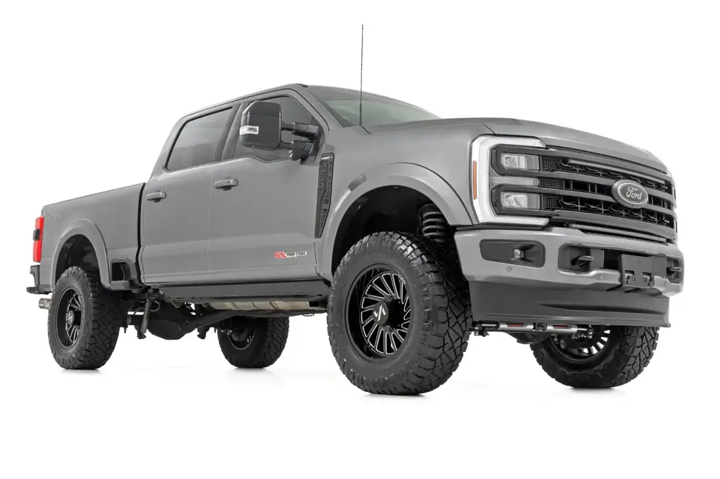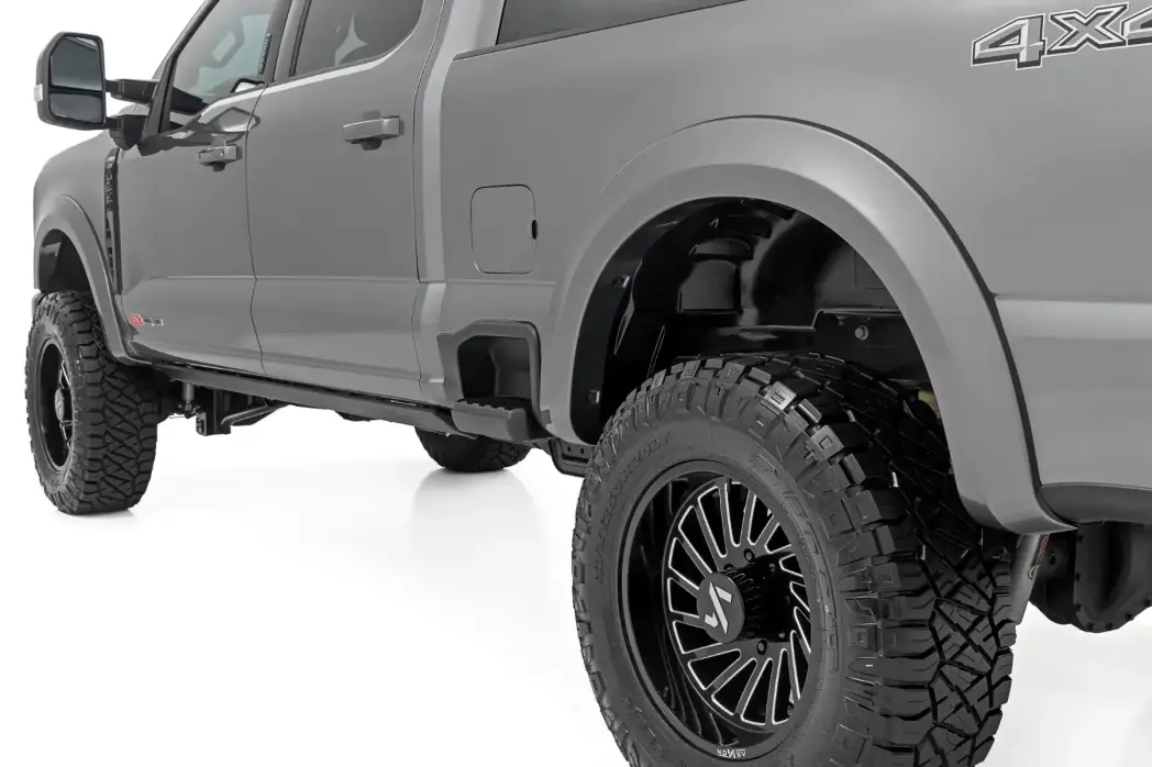 Style and Maximum Coverage: Elevate your Ford F-250/F-350 Super Duty with Rough Country's Sport Style Fender Flares. These flares extend 1 inch for wider tires and offer a 5.75-inch height, giving your truck bold styling, extra clearance, and superior protection from rocks, mud, and road debris. Turn heads with a rugged, custom look that complements your truck's style while keeping it safe.